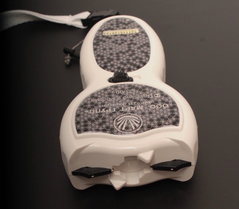 Длина «Мини» — всего 132 мм, ширина верхней части 66 мм, рукоятки — 35 мм. Весит шокер всего 165 грамм.