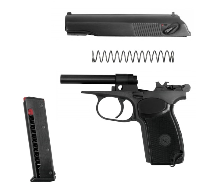 - в комплектацию входят 8 пластиковых имитаторов патрона 9мм