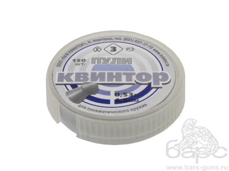 Одной из разновидностей пуль «Квинтор» является свинцовая штампованная пуля с оживальной головной частью. Такая форма сочетает в себе улучшенные баллистические свойства круглоголовой пули (особенно при стрельбе на дальние дистанции) и повышенную проникающую способность остроконечной пули.